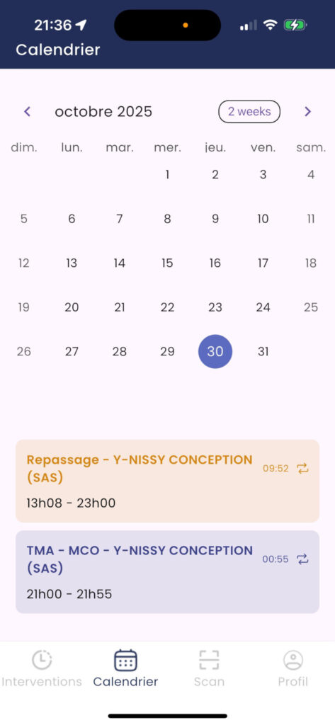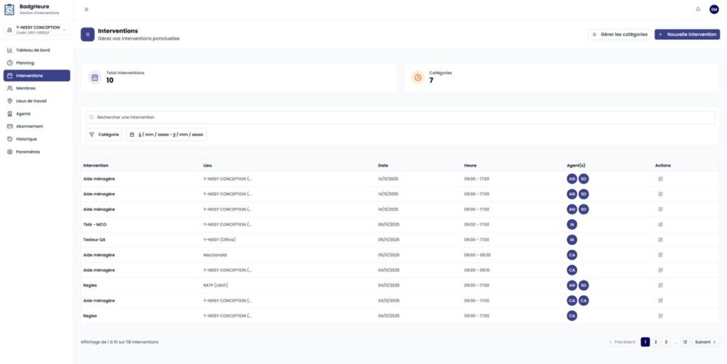 l’une dédiée au pointage des intervenants,